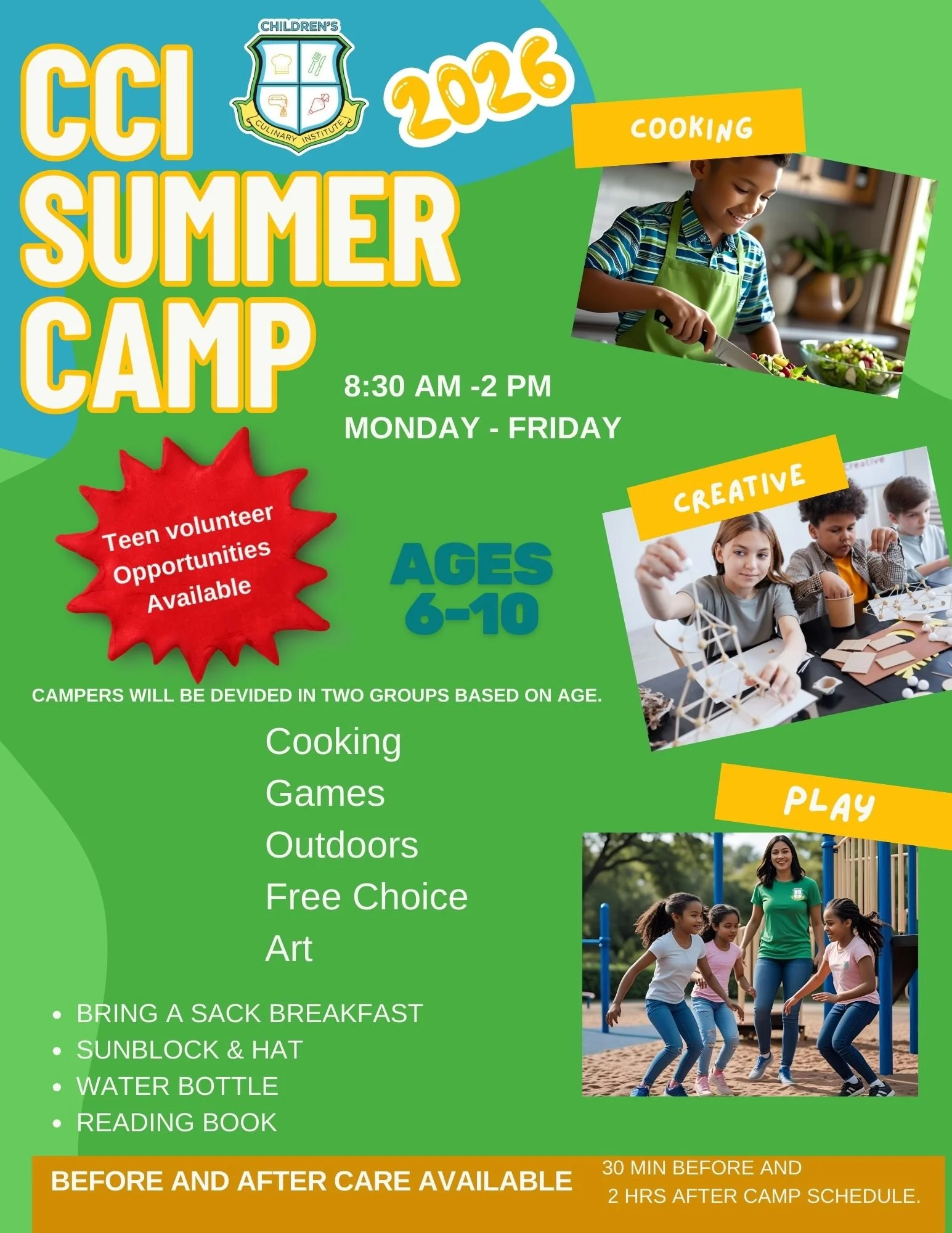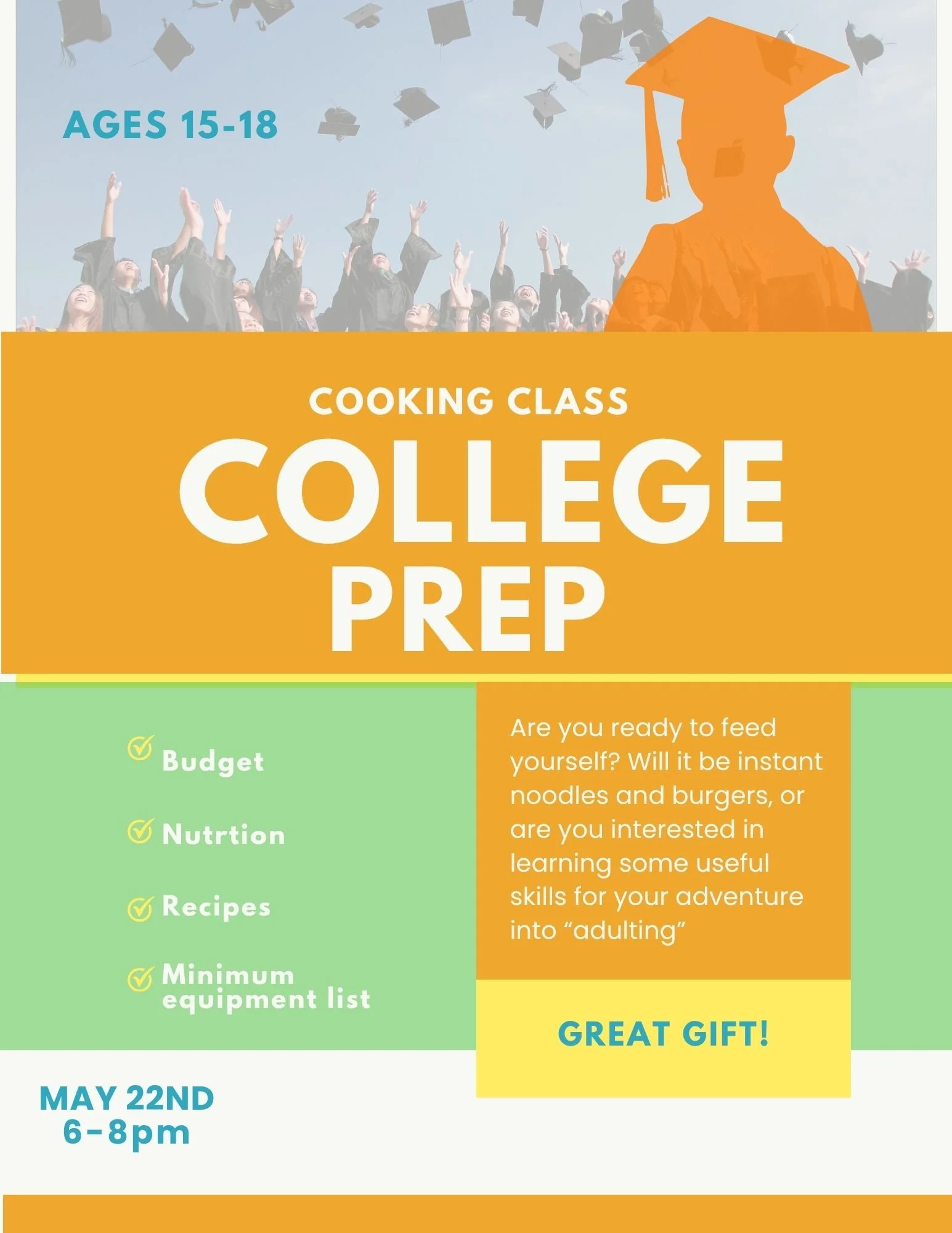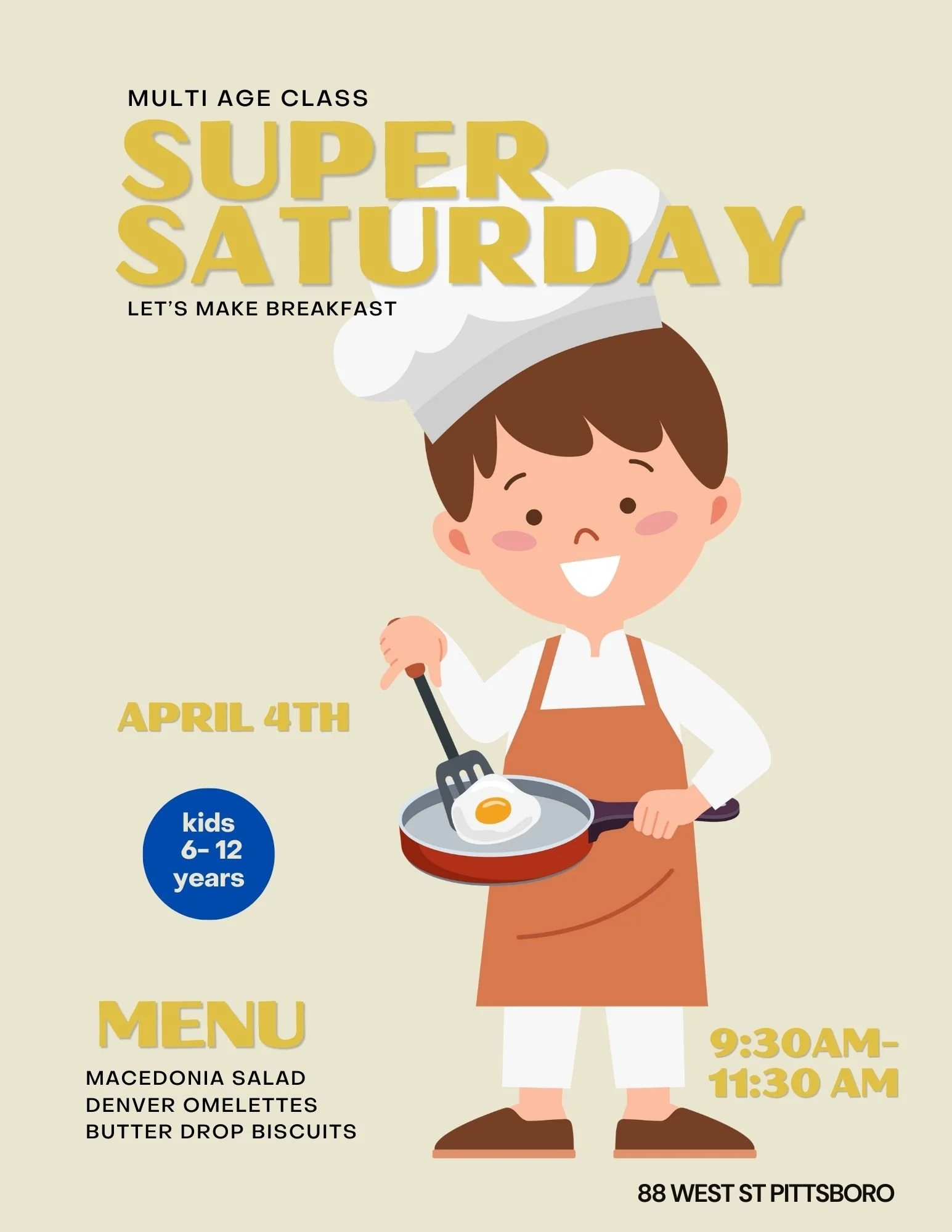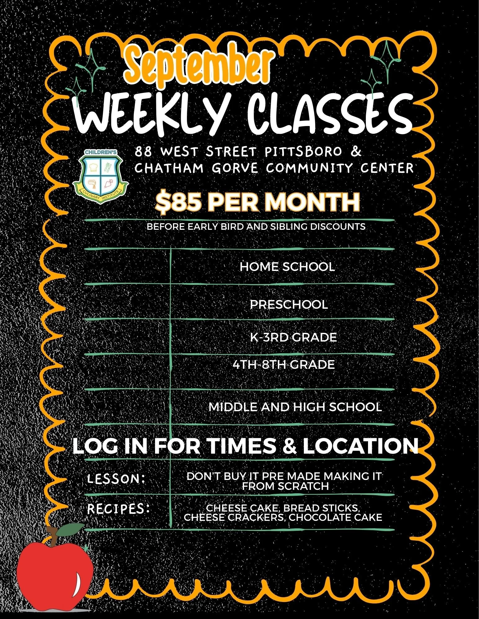 All students under 12 years old must be signed into each class with contact info for that specific day. If your Jr. Chef is over 12 years old and knows the emergency contact number for the day, they are welcome to sign themselves in.